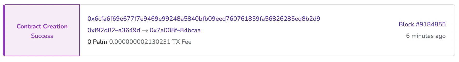 9. Look Up Your Deployment on the Palm Network Block Explorer